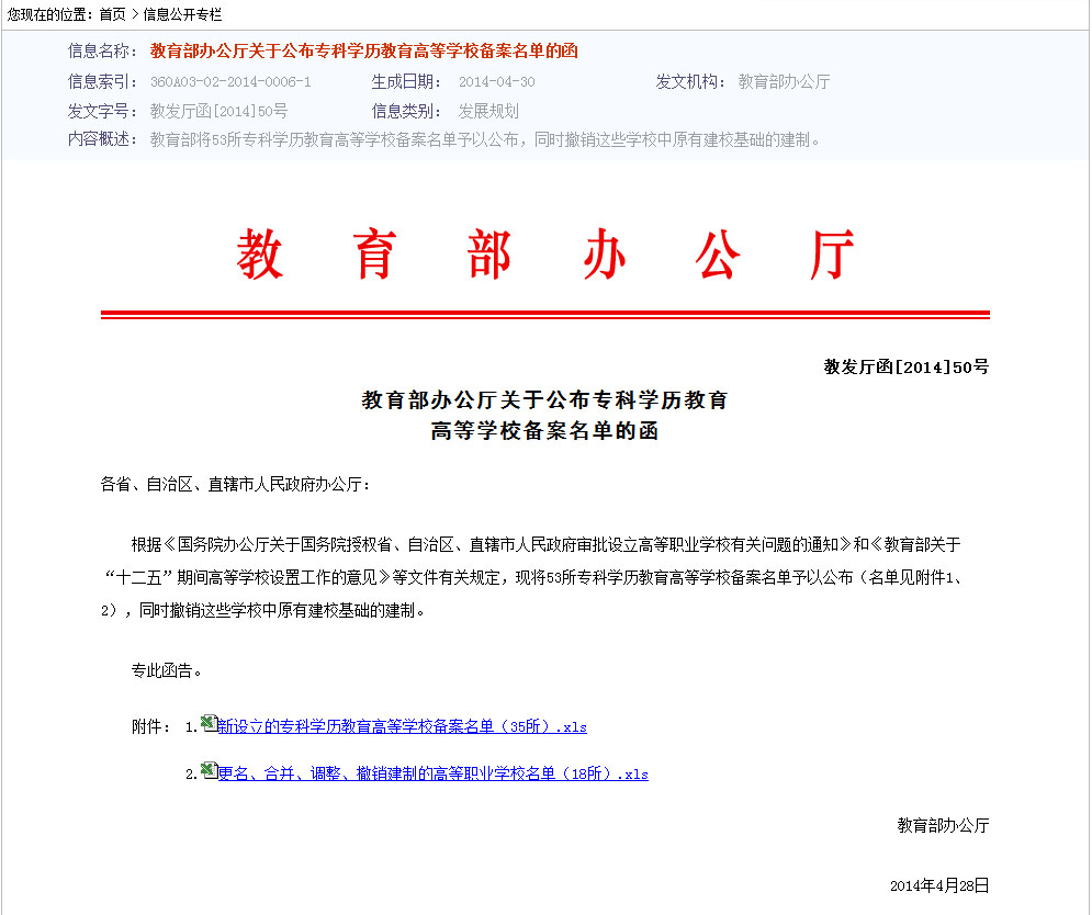 【新设立的专科学历教育高等学校备案名单(35所).xls】