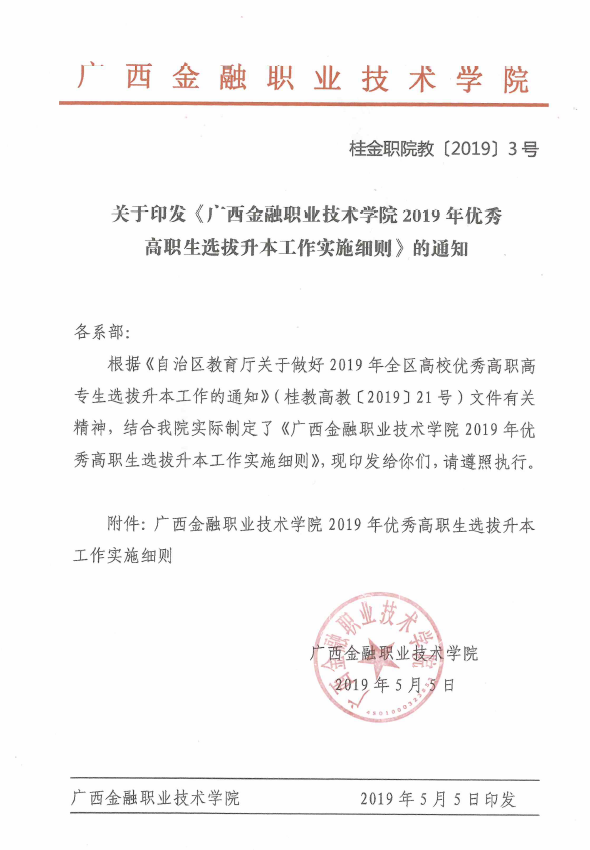 关于印发《awc77万象城官网2019年优秀高职生选拔升本工作实话细则》的通知