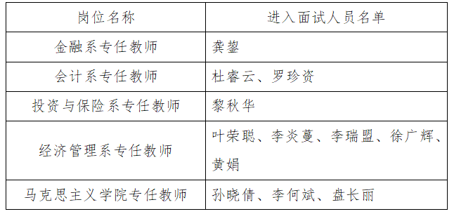 上述金融系专任教师、会计系专任教师、投资与保险系专任教师、经济管理系专任教师这4个岗位需降低进入面试的人员比例。