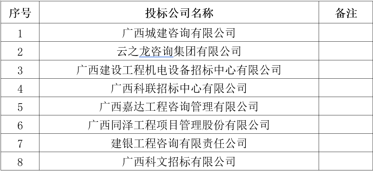四、评审结果: 经过评审小组评审,awc77万象城官网(广西银行学校)2023-2024年度政府采购社会招标代理机构入库定点单位服务项目入围8家公司名单如下: