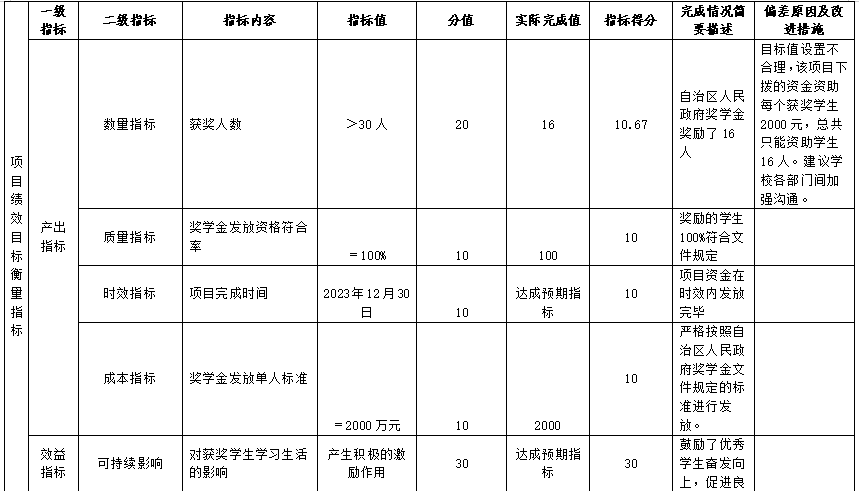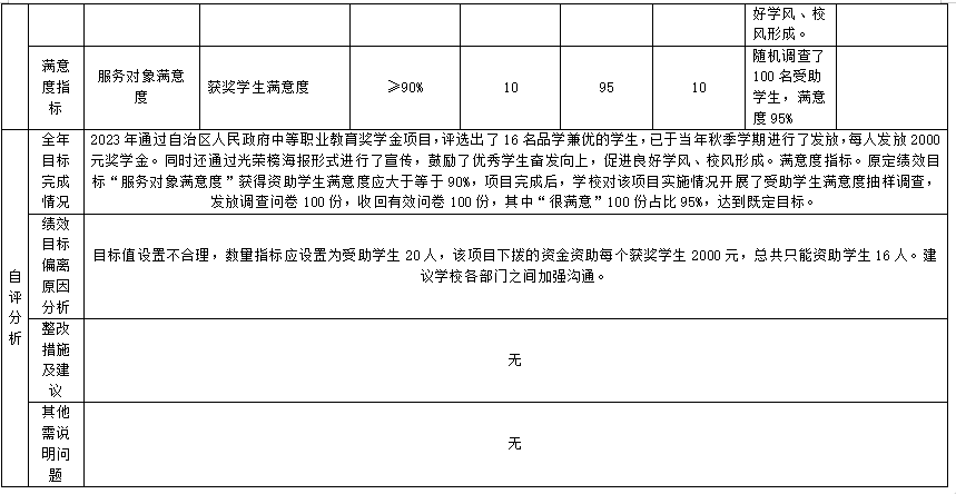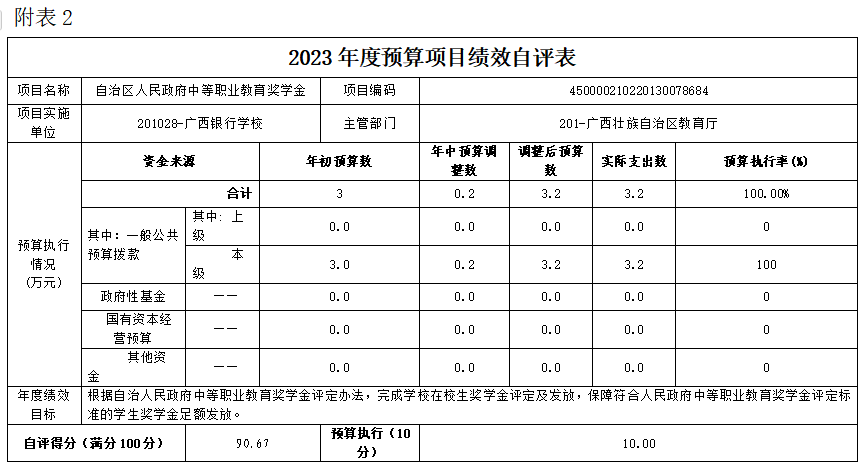 (二)自治区人民政府中等职业教育奖学金项目自评得分90.67分(2023年度预算项目支出绩效自评表附表2)