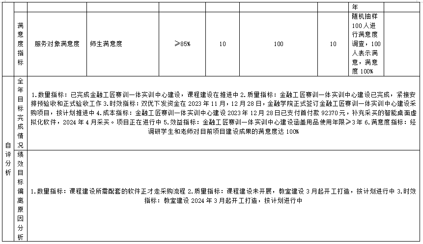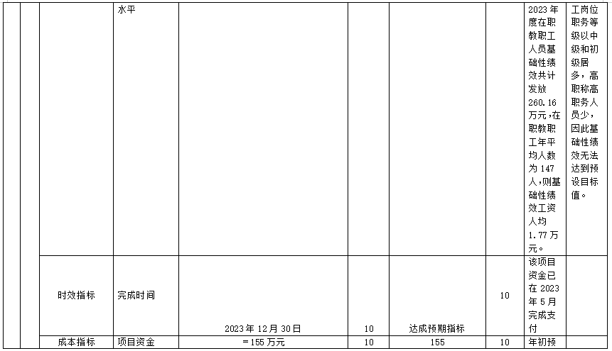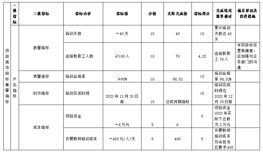 根据自治区财政厅要求,围绕学校的发展目标,结合学校经费开支和工作开展实际,组织对2023年度一般公共预算15个绩效目标项目开展自评,自评覆盖率达到100%。
