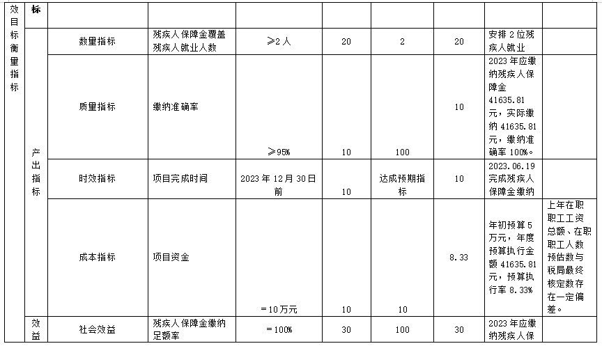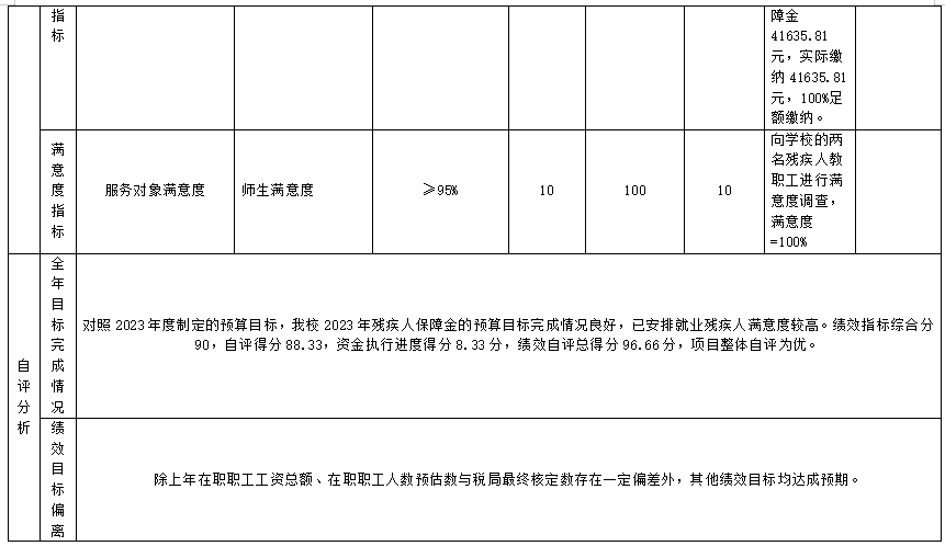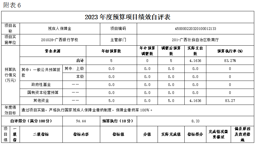 (六)残疾人保障金项目自评得分96.66分(2023年度预算项目支出绩效自评表附表6)