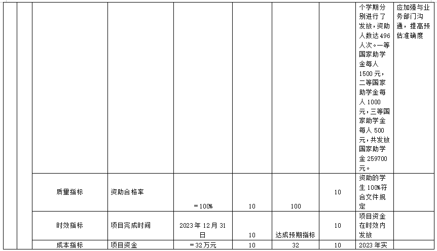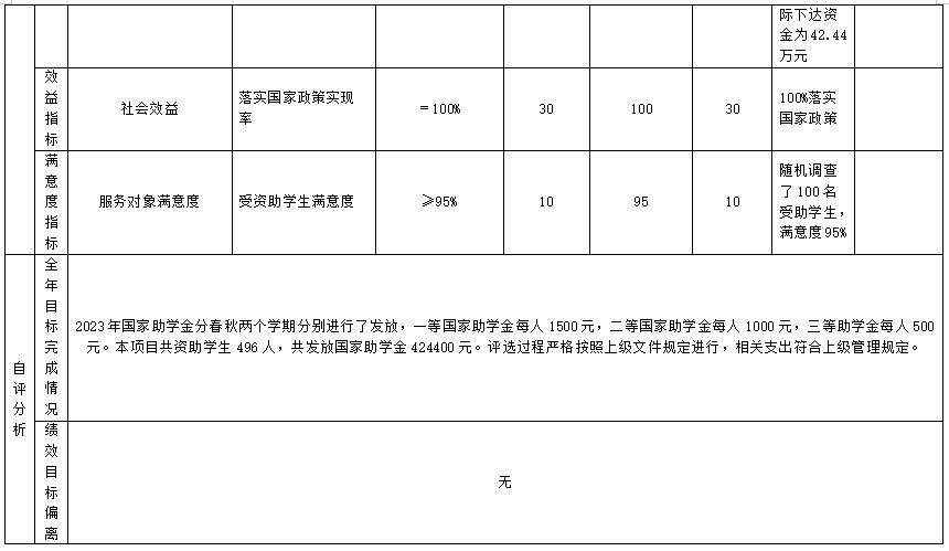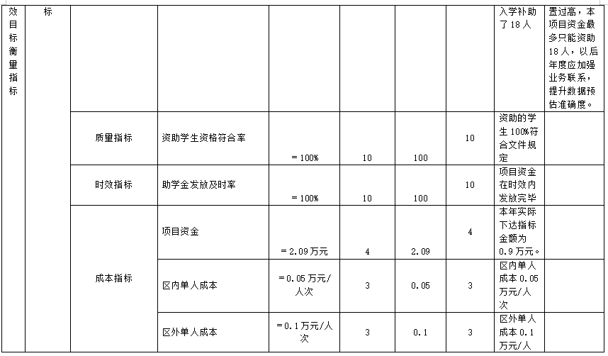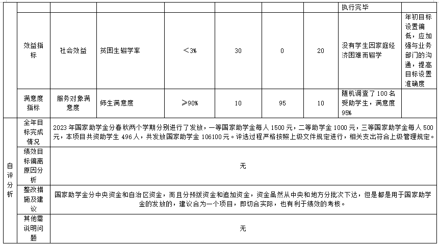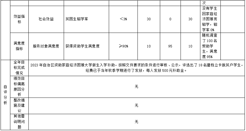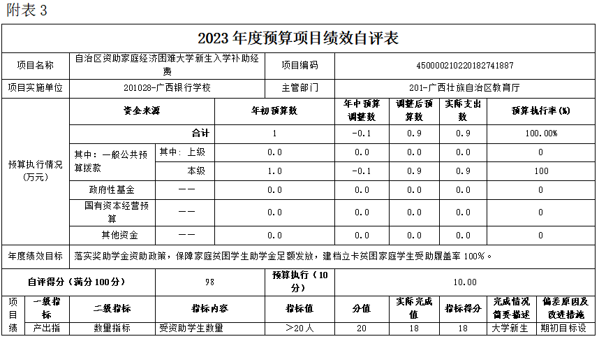 (三)自治区资助家庭经济困难大学新生入学补助经费项目自评得分98分(2023年度预算项目支出绩效自评表附表3)