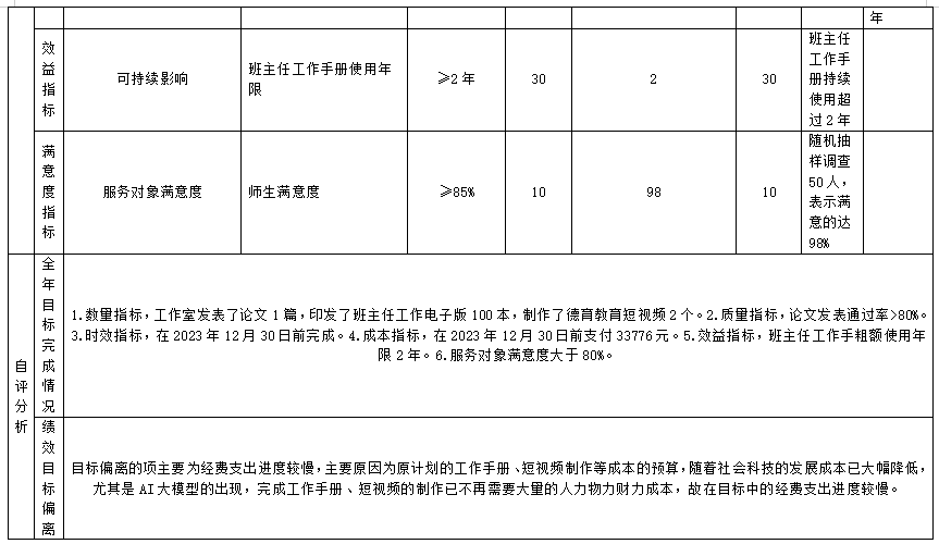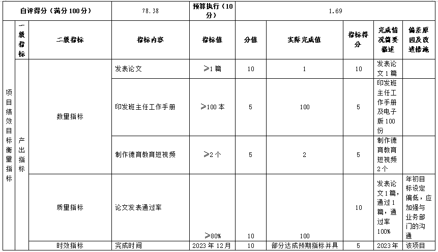 (十三)现代职业教育质量提升计划(中等职业学校班主任工作室培育投入经费)项目自评得分78.38分(2023年度预算项目支出绩效自评表附表13)