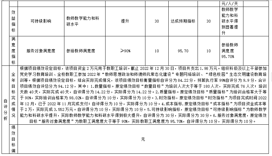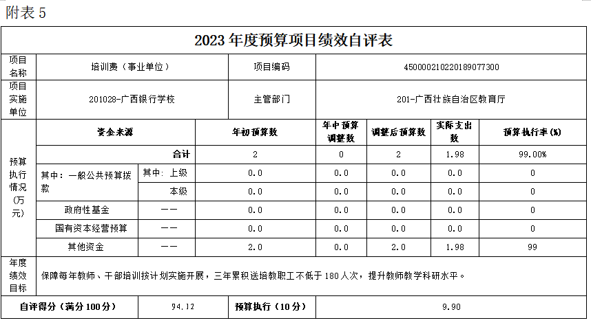 (五)培训费(事业单位)项目自评得分94.12分(2023年度预算项目支出绩效自评表附表5)