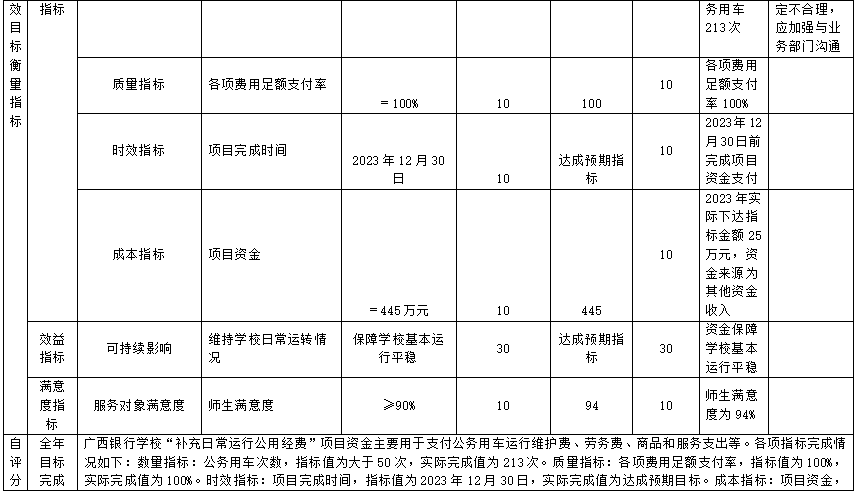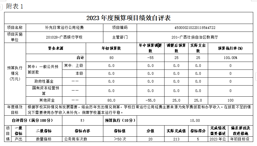 (一)补充日常运行公用经费项目自评得分85分(2023年度预算项目支出绩效自评表附表1)