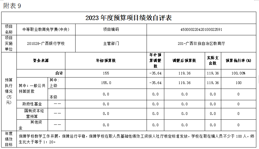 (详见附表:广西银行学校2023年度单位决算公开表)