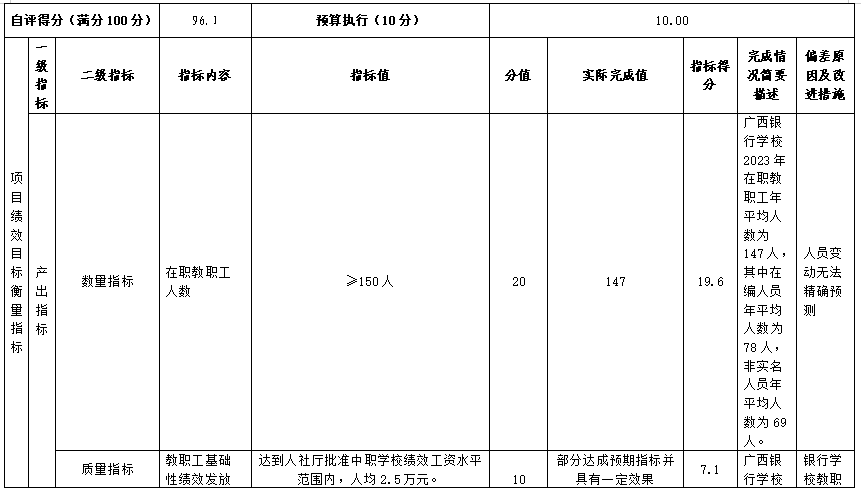 (九)中等职业教育免学费(中央)项目自评得分96.1分(2023年度预算项目支出绩效自评表附表9)