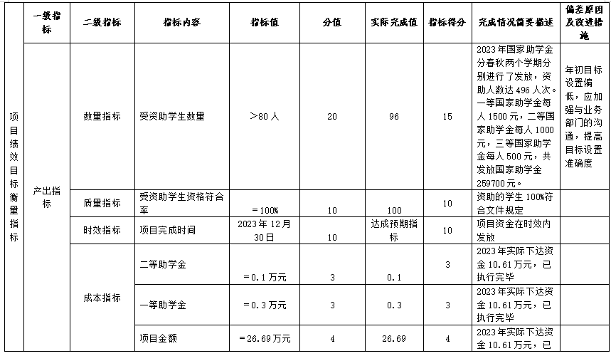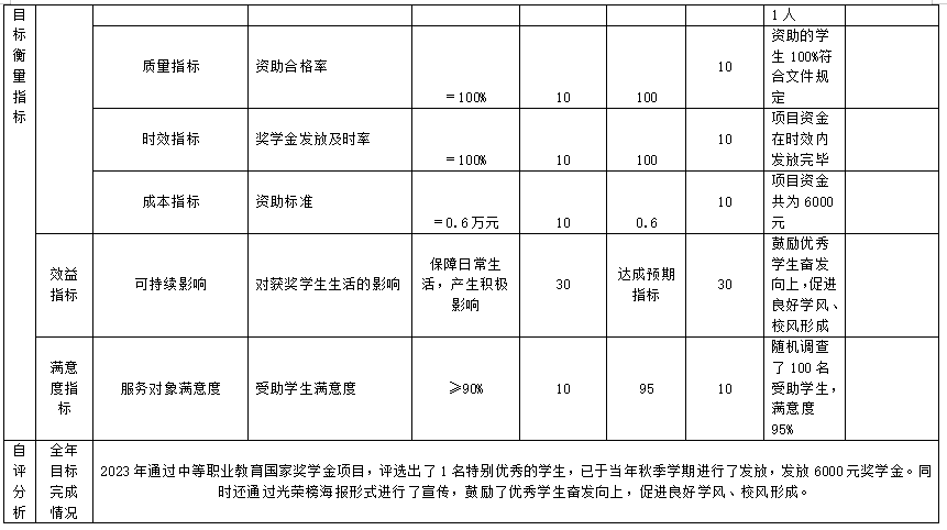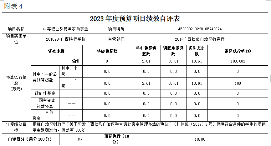(四)中等职业教育国家助学金项目自评得分85分(2023年度预算项目支出绩效自评表附表4)