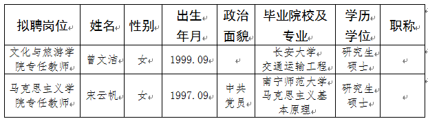 根据《广西壮族自治区事业单位公开招聘人员实施办法》(桂人社发〔2011〕155号)、《关于进一步规范区直事业单位公开招聘工作的通知》(桂人社办发〔2013〕135号)、《关于进一步完善事业单位公开招聘工作的通知》(桂人社规〔2021〕7号)和《广西壮族自治区2025年区直事业单位统一公开招聘工作人员公告》相关文件精神,通过公开招聘规定的程序,经研究决定,拟聘用曾文洁、宋云帆两位同志。现将拟聘用人员的有关情况予以公示,公示期7天,公示时间为2025年9月1日—2025年9月7日,如有异议,请于2025年9月7日前以书面形式并署真实姓名反馈到万象城官网纪委或人事处。联系地址:广西南宁市大学西路168号,邮政编码:530007,联系电话:0771—3481338,0771—3481779。