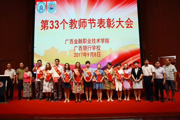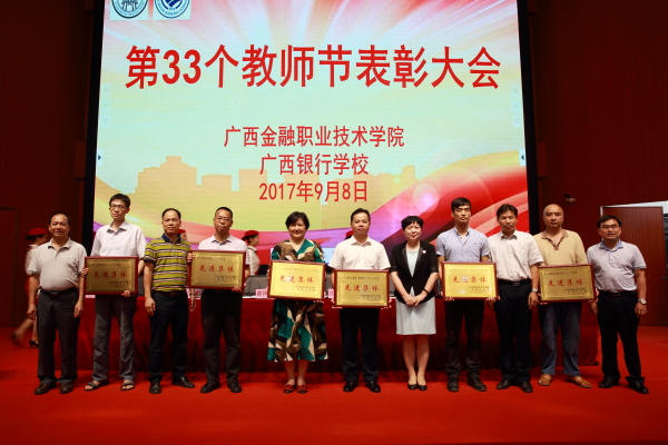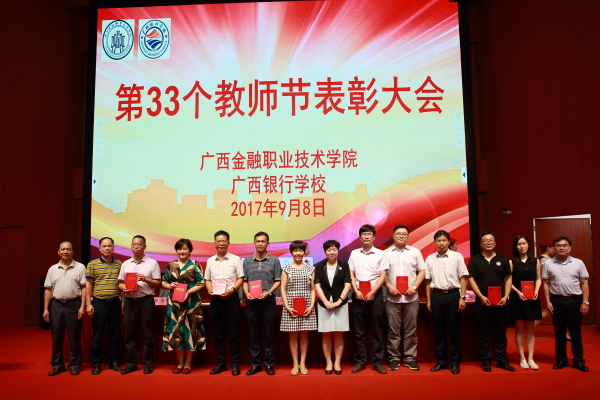 表彰大会在庄严的国歌声中拉开帷幕,随后教师们集体观看了黄大年同志先进事迹视频,并为离退休教师代表献花。随后,党委书记、院长沈立君、党委副书记刘华政、副院长谢沛善、副院长潘大胜、院长助理罗坚分别宣读了《关于表彰2016--2017学年十佳教师的决定》、《关于表彰2016年度先进集体的决定》、《关于表彰2016年度awc77万象城官网(广西银行学校)先进工作者的决定》、《关于给校龄满25年女的教职工及校龄满30年男教职工颁发荣誉证书的决定》、《关于聘任2017年带教指导教师、带教班主任的通知》,学院(校)领导班子为“十佳教师”、“先进集体”、“先进工作者”“校龄满30年教职工”颁奖,对他们的工作和付出予以肯定。