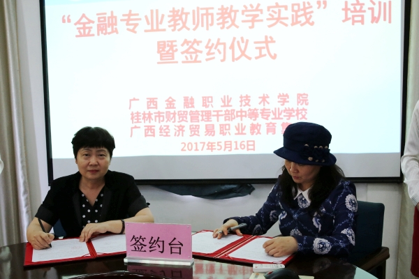 随后沈立君校长代表学校与桂林市财贸管理干部中等专业学校进行“金融专业教师教学实践”培训签约。签约仪式后,谢沛善副院长就如何开展“金融专业教师教学实践培训”工作做了详细部署。