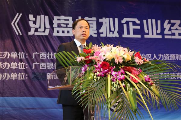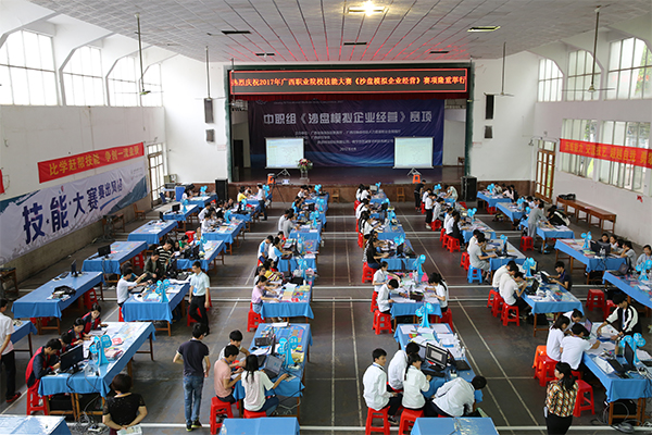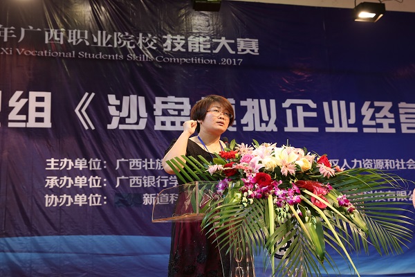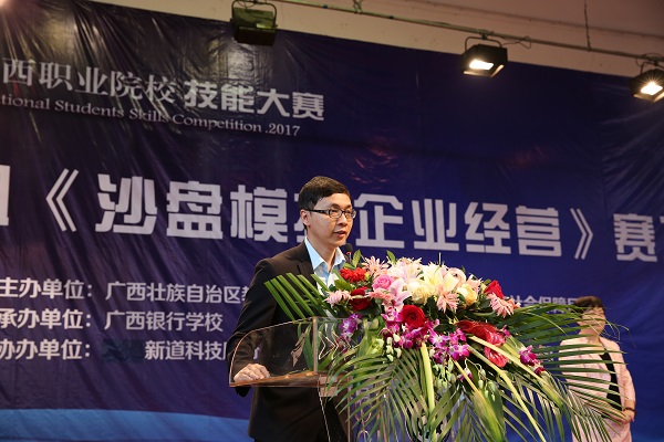 4月20日上午,由自治区教育厅、人社厅共同主办,万象城官网承办的2017年广西职业院校技能大赛中职组《沙盘模拟企业经营》比赛在万象城官网隆重举行。赛项裁判长范伟,新道科技股份有限公司技术总监黄宇,学校校长沈立君,副校长谢沛善出席了开幕式。开幕式由谢沛善副校长主持。