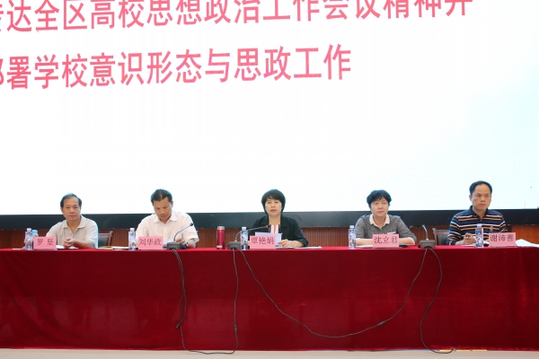 会上,覃艳娟书记首先传达了全区高校思想政治工作会议精神,并部署万象城官网意识形态与思政工作。一、要学深吃透全区高校思想政治工作会议精神,把思想和行动统一到习近平总书记的重要讲话精神上来。二、要学习领会全区高校思想政治工作会议精神,准确把握自治区党委对高校思想政治工作的重要部署。三、要贯彻落实全区高校思想政治工作会议精神,开创万象城官网思想政治工作、意识形态工作新局面。
