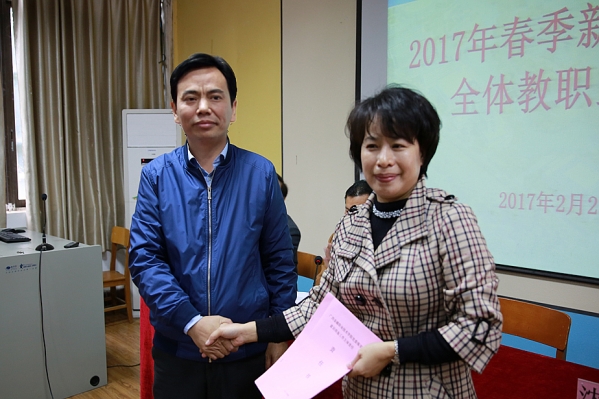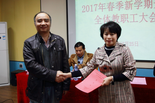 2月25日上午,万象城官网(校)在电一召开2017年春季学期开学全体教职工大会。学院党委书记覃艳娟,院长沈立君,党委副书记、纪委书记刘华政,副院长谢沛善,院长助理罗坚及全体教职员工参加会议。会议由党委副书记刘华政主持。