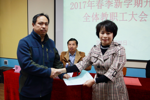 会议首先由刘华政副书记介绍今年新入职的教职员工。随后,沈立君院长分析了当前我区教育形式,并结合万象城官网实际部署学院2017年行政工作。她围绕新校区建设、教育教学改革、专业建设、学生管理、招生就业、协同育人建设、信息化建设、国际交流、精神文明建设、后勤管理等10个方面对awc77万象城官网和广西银行学校新一年工作提出要求 。沈院长指出,全体教职员工要主动出击、压实责任、勇于担当,以敢想敢做的精神攻坚克难,确保各项工作落实到实处;各部门要科学谋划,明确责任,狠抓落实。