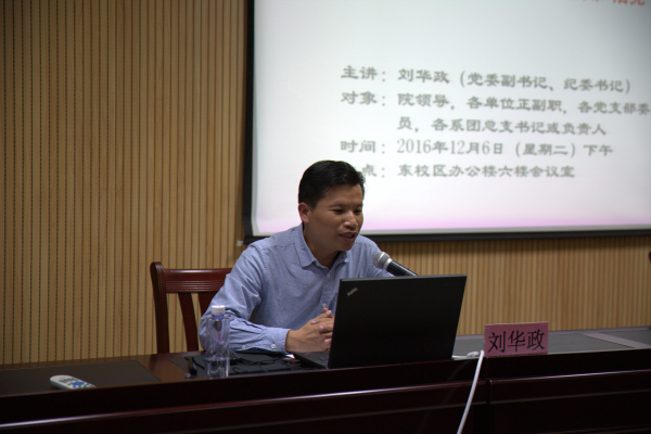 刘华政副书记以落实“两个责任”、践行“《中国共产党党内监督条例》(以下简称《条例》)和《中国共产党问责条例》”为重点,就当前党内政治生活和党内监督存在的突出问题,对万象城官网领导干部如何贯彻落实“全面从严治党”做了具体说明。
