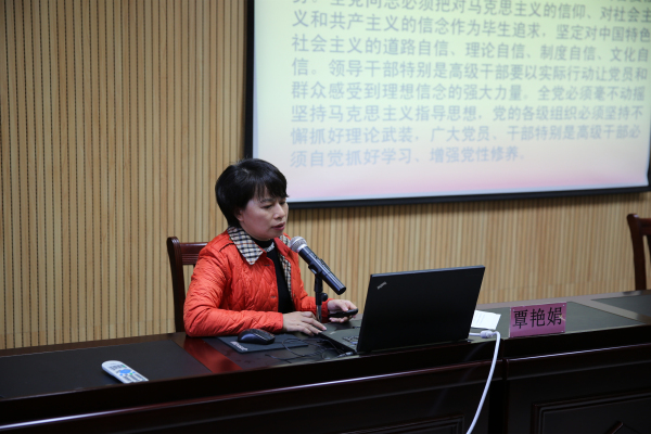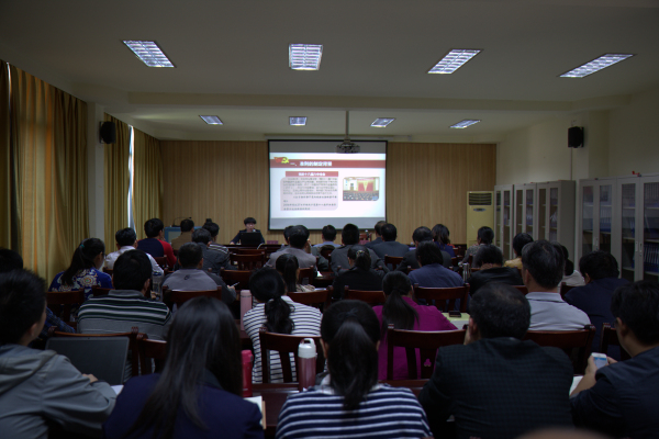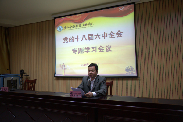 覃艳娟书记在会上传达了党的十八届六中全会精神并领学党的十八届六中全会公报(以下简称“公报”),对公报的主要内容、重要关键字进行详细解读。同时,就全会如何指导学院工作提出了三点思考:第一,“欲知平直,则必准绳;欲知方圆,则必规矩”;第二,找准“短板”,齐头并进;第三,不忘初心,方得始终。覃书记指出,学习贯彻落实党的十八届六中全会精神,是当前和今后一个时期学院的重要任务。有利于严肃党内政治生活,有利于增强全体干部党员的“四个意识”,对学院深化全面从严治党,进一步推进综合改革,具有十分重要的意义。