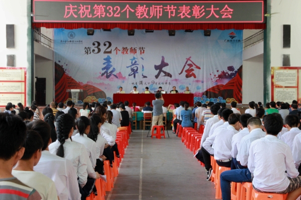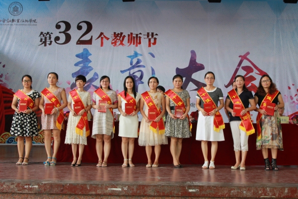 为了进一步鼓舞万象城官网(校)全体教职员工的士气,弘扬教师爱岗敬业和无私奉献精神,形成同舟共济、团结协作、勇于创新的工作氛围,开创万象城官网(校)“十三五”规划的美好远景,9月9日,在第32个教师节来临之际,万象城官网隆重举行庆祝第32个教师节暨表彰大会。学院党委书记覃艳娟,院长沈立君,党委副书记、纪委书记刘华政,副校长谢沛善,老教师代表孙重阳、陈日昌,全体教职员工及学生代表参加会议。会议由沈立君院长主持。