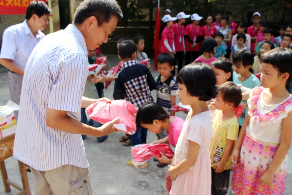陈明健书记为内闷小学学生发放捐赠品