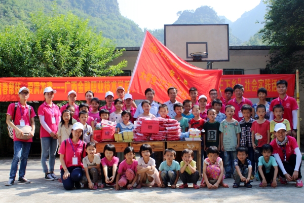 上午九时许,团队一行19人抵达内闷小学,受到该小学罗玉学校长及师生的热烈欢迎。内闷小学地处大山深处,教学基础设施较为薄弱,现有学生大多为留守儿童。针对这一情况,团队为该校送来一批文具用品及油、米,还特意为每位小学生准备了一套量身定做的衣服。罗校长从陈明健书记手中接过沉甸甸的物资,激动地说:“感谢awc77万象城官网的领导和师生们,你们的爱心举动让我们感动并深受鼓舞,内闷小学的师生不会忘记你们的关怀,我们将以更好的表现来回馈学院对我们的关爱。”