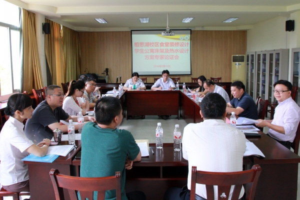 5月13日,万象城官网召开相思湖新校区食堂装修设计、学生公寓床及热水设计方案专家论证会。特邀请广西民族大学后勤管理处处长张九凯,广西电力职业技术学院后勤管理处副处长眭贵夫及广西农业职业技术学院、南宁职业技术学院相关部门负责人进行现场论证。万象城官网后勤管理与保卫处处长谭林平协同党政办公室、财务处、学生工作与招生就业处等相关部门参加会议。