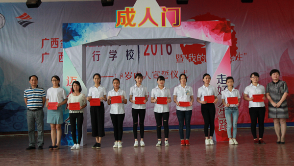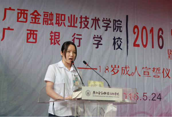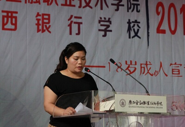 伴随着庄严的国歌声,仪式正式开始。首先,由中职金融1401班全体同学共同朗诵诗文《十八岁》,铿锵有力的朗诵声表达了同学们对成人的期待和感悟。接着,学生代表宋易玲上台发言,她感谢父母、学校、老师和同学们对她成长的指导和帮助,并号召同学们做孝敬父母、心地善良、懂得感恩、有责任感的好公民。金融1401班陈佳华的妈妈作为家长代表发言,她感谢学校对每一位学生的辛勤培养,并叮嘱同学们时刻将母校的教诲和期望牢记于心,努力成为对社会有用的人才。