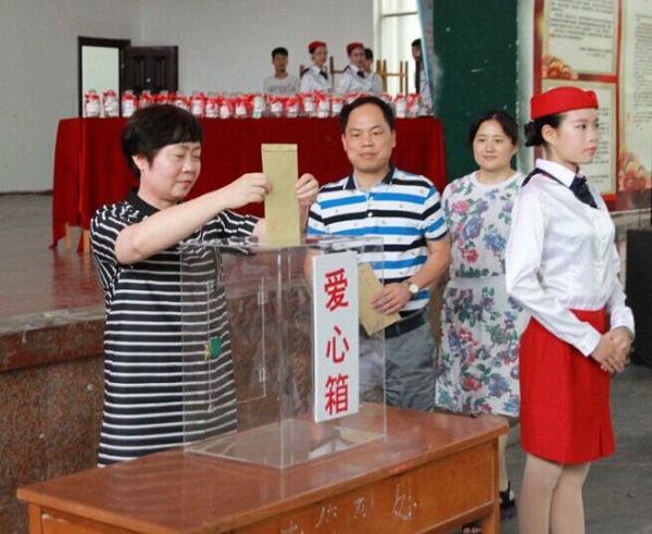 最后,与会领导向品学兼优、家庭贫困的学生发放2015年度爱生节资助款项,为他们献上万象城官网(校)师生的温暖。15级大中专各班学生代表将装满理想和心愿的心愿瓶上交到主席台,并由学生干部封存。在《爱的奉献》歌曲伴奏下,全体教职员工一一走上主席台,为品学兼优的困难学生捐款,献上自己的爱心。