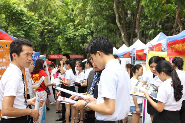 揭牌仪式结束后,校园双选会正式拉开序幕。据悉,本次双选会有涵盖金融业、旅游业、建筑业、房地产、信息传输、餐饮、高速公路、教育、通信等多个行业领域共120多家企业进校招聘,为万象城官网2016届2000多名毕业生提供5000多个就业岗位。