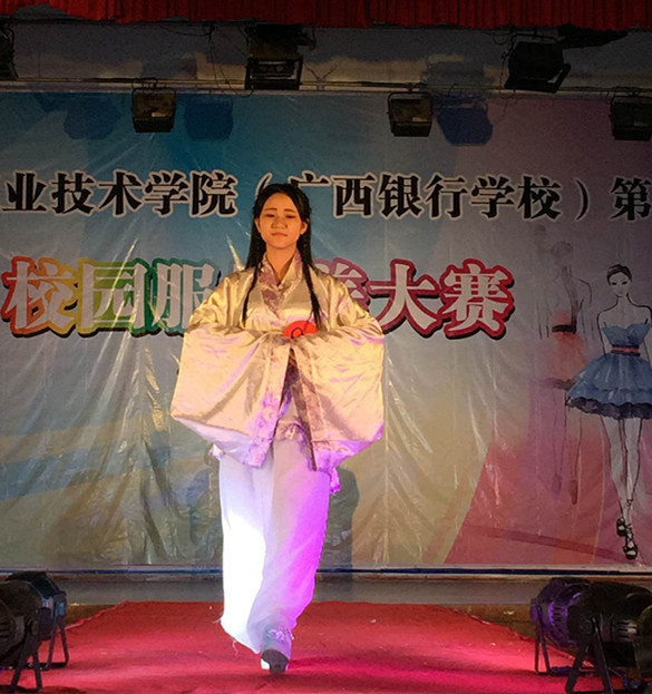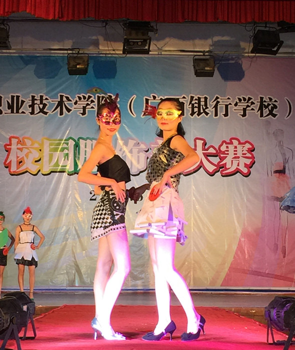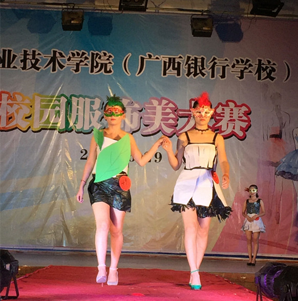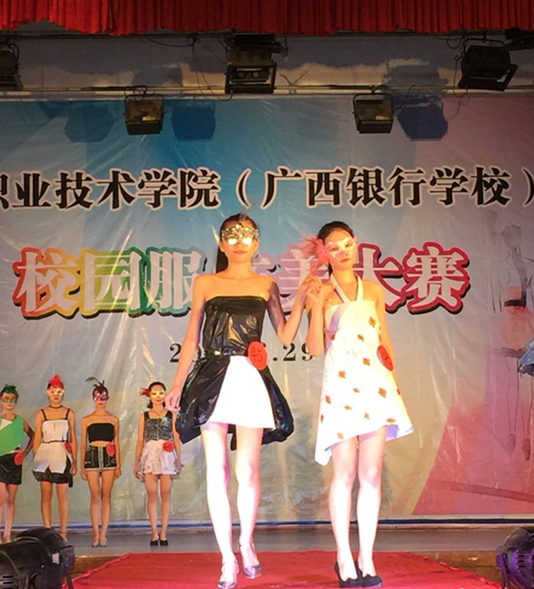 此次比赛采取自由组队、自行设计服装的形式进行,各参赛队伍通过自编自导的舞台短剧、场景模拟或T台走秀,一展服饰之美。比赛开始,只见大专礼仪队的姑娘们身着鲜艳亮丽的服装款款而来,仿若天仙下凡。她们的服装中有修身的旗袍装、有复古的连衣裙、有高贵的公主裙、还有圣洁的婚纱等等,她们以优美的走姿、站姿和表情神态恰到好处地诠释了各类服饰的独特之美。高职国际会计1501班的参赛选手们别出心裁,用废弃的硬纸、塑料袋做成一套套雍容华贵、秀气端庄、清新优雅的服饰,将简约、环保和彩绘的理念贯穿到服装设计中,赢得了观众响亮的喝彩声……在各参赛队伍的精心设计和认真准备下,整场比赛既紧张热烈又和谐愉悦,美轮美奂的服装展示为观众们带来了一场精彩的视觉盛宴。