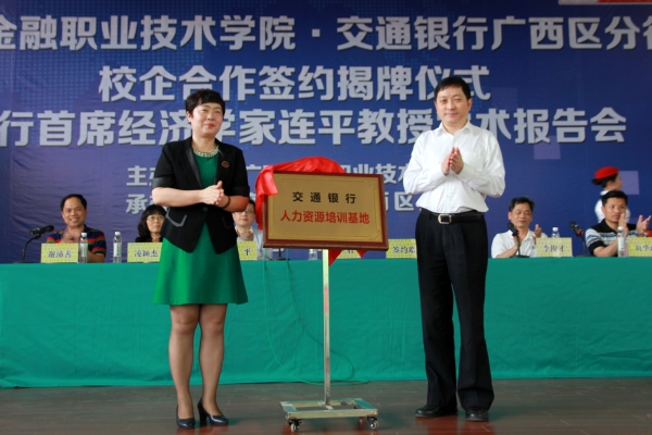 沈院长(左)与陈东玮副行长(右)为“交通银行人力资源培训基地”揭牌