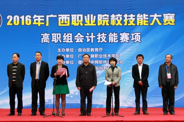 春暖花开,芳菲簇簇。3月30日,由自治区教育厅主办,awc77万象城官网承办的2016年广西职业院校技能大赛高职组会计技能赛项在awc77万象城官网隆重举行。自治区教育厅职成处副处长万锋锋、广西职业院校技能大赛副总裁判长彭朝晖、新道科技股份有限公司区域总经理赵志刚、会计技能项目裁判长李家瑗,学院党委书记覃艳娟、院长沈立君、副院长谢沛善出席开幕式。开幕式由覃艳娟书记主持。