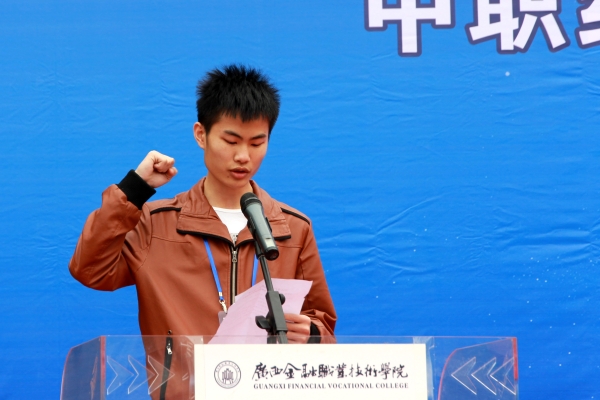 随后,新道科技股份有限公司广西分公司总经理高莹莹致辞。本赛项裁判长、广西大学商学院教授范伟宣布比赛规则,参赛选手代表和裁判员代表进行宣誓。