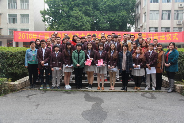 2月19日上午,万象城官网举行2016年学生赴台湾学习交流欢送仪式。学院党委书记覃艳娟,院长沈立君,各相关处室负责人,指导老师,班主任,家长和全体赴台同学参加欢送仪式。