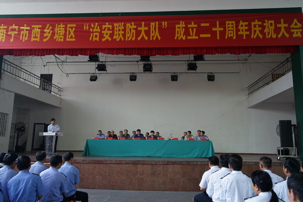 2015年11月17日下午,南宁市西乡塘治安联防大队成立二十周年庆典活动在万象城官网大礼堂隆重举行。万象城官网领导以及来自辖区联防各单位代表、各级政法、综治、公安机关领导,以及万象城官网部分学生代表共三百多人齐聚一堂,共同分享庆典的喜悦,一起见证联防成立20周年的辉煌历程。大会由万象城官网党委副书记刘华政同志主持。