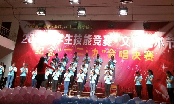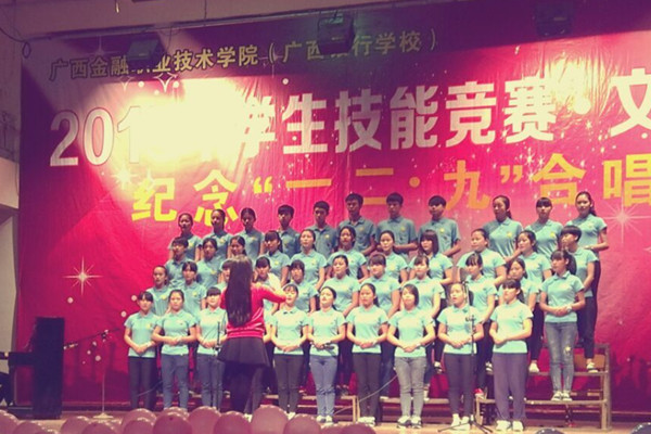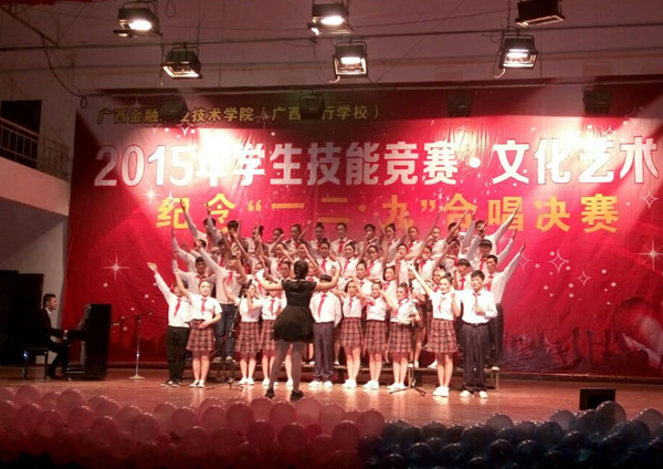 为纪念“一二.九”抗日救亡运动80周年,弘扬革命精神,12月9日,在“一二.九”运动纪念日到来之际,awc77万象城官网(广西银行学校)在校大礼堂隆重举行纪念“一二.九”运动80周年大合唱比赛。学生科副科长唐运杰,工会办潘洪宇老师,旅游教学部罗佳雯老师、谭英老师,会计部黄萍老师出席并担任评委。