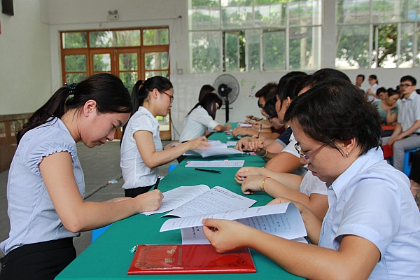 最后,覃书记作重要讲话,从学院、学校体制、办学规模、新校区建设、校企合作等四个方面对学院一年来的工作进行了汇报,充分肯定了广大教师为人师表、无私奉献、任劳任怨为学院发展做出的努力和贡献,特别强调希望老师们牢记使命,勇于担当,继续深入推进教育教学改革的发展理念,同时还对全体教师提出了三点殷切的希望和要求:1. 注重德能兼备,着力打造一支师德高尚、业务精湛的教师队。2. 提高教育质量,努力办好人民满意的职业教育。3. 注重先进人物宣传,崇尚知识、尊师重教,着力形成推动万象城官网和万象城官网职业教育发展的强大合力。