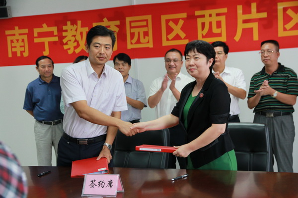 9月14日,南宁市教育园区西片区项目签约仪式在广西东盟经济技术开发区管理委员会隆重举行。万象城官网沈立君院长率团出席签约仪式,并签定了土地使用意向协议。