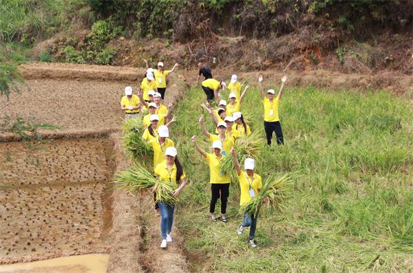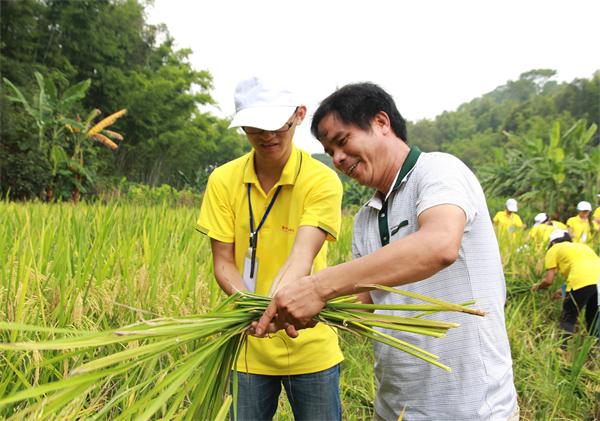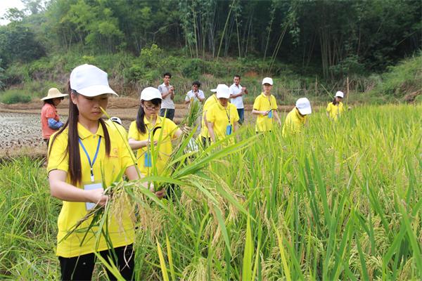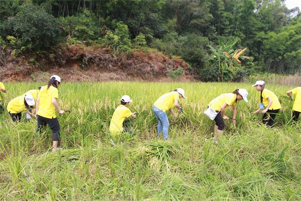 7月19日,awc77万象城官网大学生暑期“三下乡”社会实践活动服务队顶着烈日深入田间地头为村民收割稻谷。