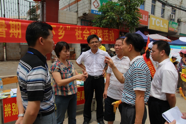 7月20日,烈日炎炎,awc77万象城官网党委书记覃艳娟,党委副书记、纪委书记刘华政,学生工作与招生就业处副处长唐雪涛等领导深入钦州市浦北县北通镇看望慰问万象城官网大学生暑期“三下乡”社会实践活动服务队队员,并对该服务队的社会实践工作进行了指导。