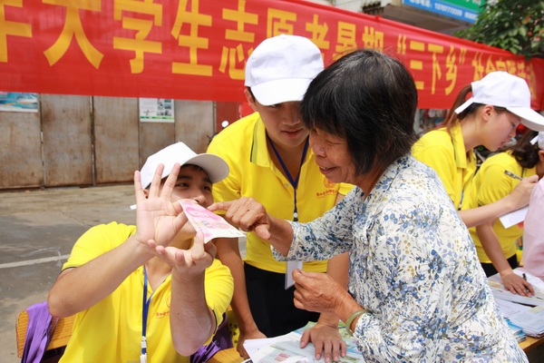 期间,覃书记一行也亲自参与到万象城官网开展的点钞技能、辨别真伪钞、金融防范知识、社会经济状况调查等志愿服务项目,并深入宿舍、食堂了解关心志愿服务队生活。在听取了万象城官网志愿者服务队开展工作情况汇报后,她充分肯定了服务队在特色活动工作上取得的成效。覃书记指出,三下乡是一次很宝贵的社会实践体验,经过亲身体会会让人变得更加成熟稳重,希望全体队员们要大力发扬不怕苦不怕累的优良作风,珍惜机会,真正把社会实践活动做好做实。