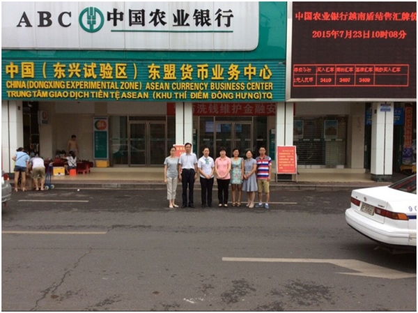 7月23日至24日,沈立君院长带领2015年广西高校科学技术研究项目《人民币跨境投资及国际化政策研究》课题组一行6人到中国农业银行防城港东兴市支行调研人民币跨境投资及国际化问题。