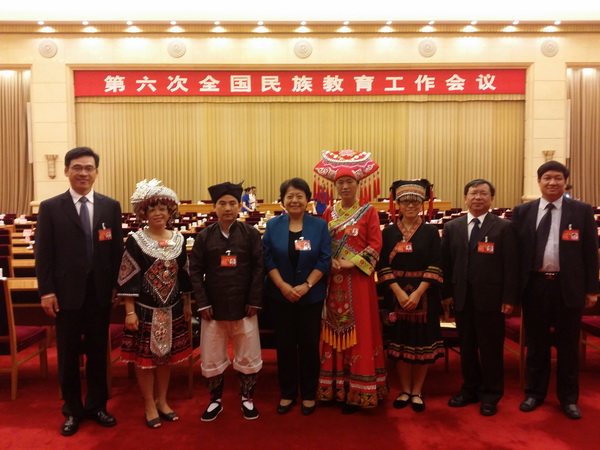 8月18日,第六次全国民族教育工作会议在京举行。广西作为少数民族聚居地区,选派了四名少数民族教师代表出席会议。自治区副主席李康带队,教育厅厅长秦斌、民委主任卢献匾、统战部副部长卢能干以及来自基层教育战线四名教师代表参加了会议。万象城官网金融教学部教师欧捷作为瑶族教师代表应邀参会。