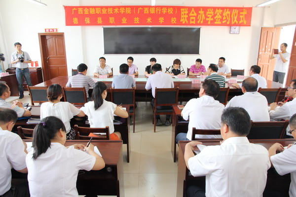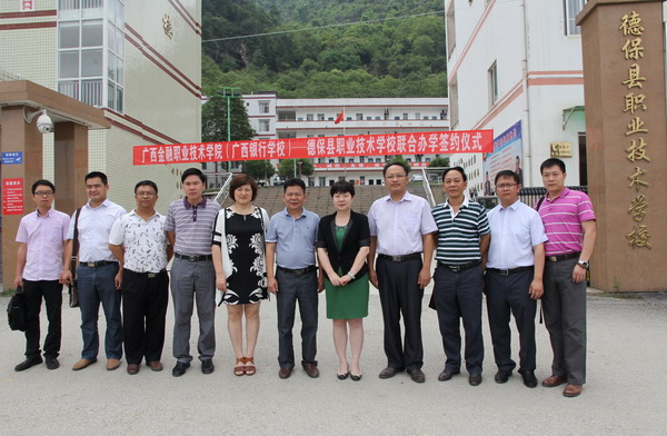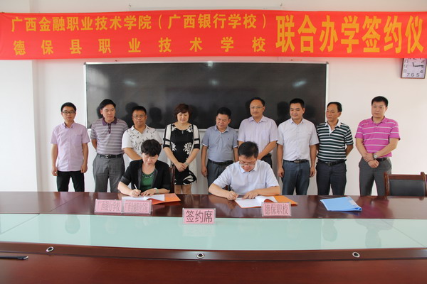 5月18日,awc77万象城官网(广西银行学校)赴德保县职业技术学校开展联合办学活动,并签署了联合办学协议。出席本次签约仪式的领导有:德保县委常委、宣传部部长、县人民政府副县长杨科,百色市教育局副局长马力,百色市教育局职成科科长潘庄安,县教育局工委书记吕成况,德保职业技术学校校长梁才世,德保职业技术学校的师生及万象城官网院长沈立君,党政办公室主任韩蓓丽,招就办主任石利军,学生科科长蒋凯,教务科副科长罗珍资,招就办副主任张聪等9人。仪式由县教育局工委书记吕成况主持。