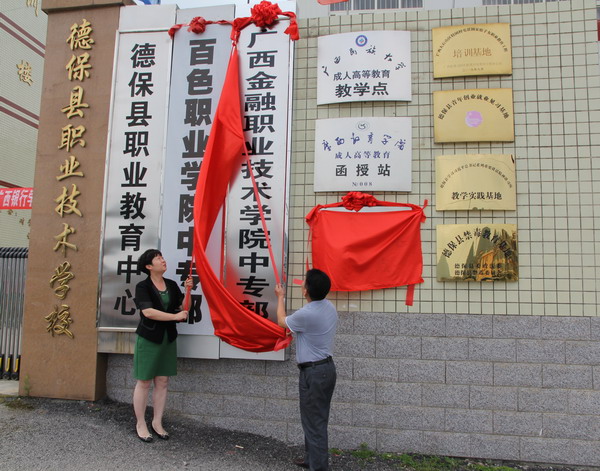 沈立君院长与百色市教育局副局长马力同志为办学点揭牌