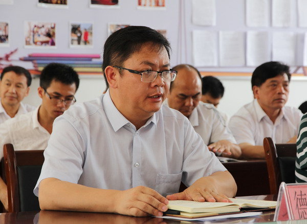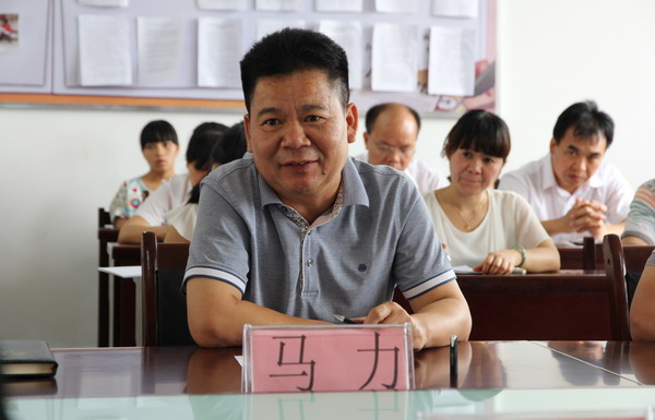 百色市教育局副局长马力同志发言。他对本次校校联合办学顺利开展表示衷心的感谢。期望通过校校合作,实现师资队伍水平上台阶、学生规模质量上层次、教育科研实现新突破。