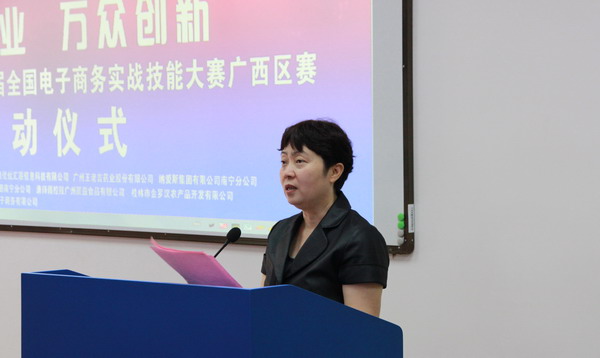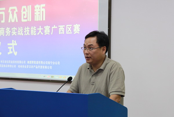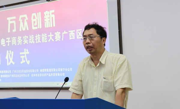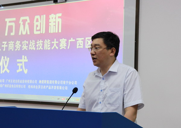 随后,自治区商务厅电子商务处处长助理蒋侃,广西电子商务协会会长黄光强以及企业代表分别从国家对电子商务发展的战略模式,我区电子商务发展情况及校企合作构想等方面作了发言。