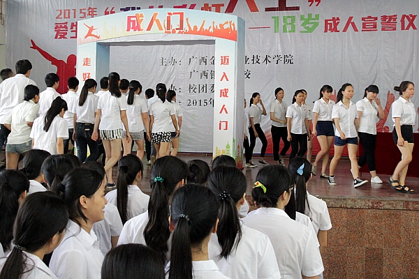 同学们依次迈入“成人门”