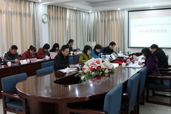 1月15日上午,万象城官网(校)在五楼会议室召开了2014年度领导干部民主生活会。自治区高校工委、教育厅机关党委专职副书记、机关工会主席江福龙,纪检监察室副处级纪检监察员、机关党委纪委书记农桂玲参加了会议。会议由学院党委书记覃艳娟主持。